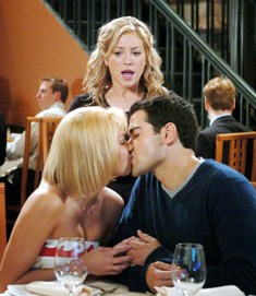 JT-05076 : Canoodling couple Carrie (Arielle Kebbel) and John Tucker (Jesse Metcalfe) are oblivious to waitress Kate (Brittany Snow) in JOHN TUCKER MUST DIE.